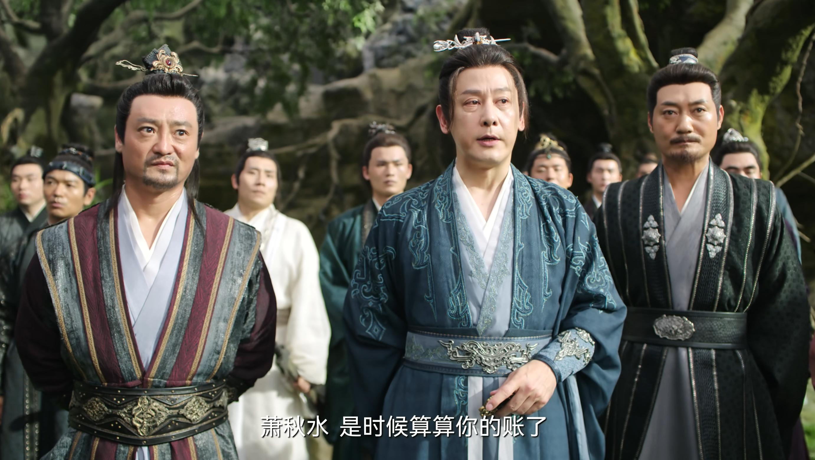 第14集两方对峙的这场大戏,成毅饰演的萧秋水被邱心志饰演的屈寒山层层算计,剧本穿帮这个镜头,出现在原本卷入这场阴谋的唐方被唐门带走后,屈寒山说“萧秋水,是时候算算你的账了”。