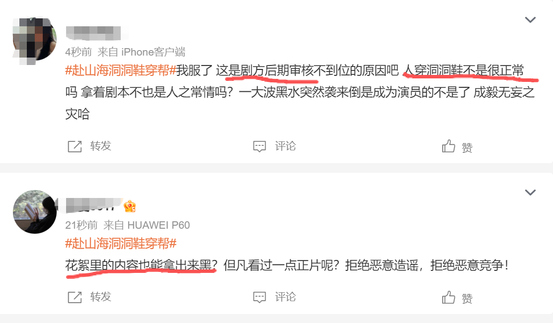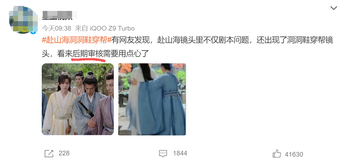 如果像《赴山海》这样的低级穿帮,都能临时修改一下镜头就过去、都能被演员粉丝维护、那以后还会有剧组认真创作吗?在这件事上,宽容的态度和用“拍摄花絮”来混淆概念、颠倒是非的说法,是没有底线的纵容,只会让这个行业迅速玩完!